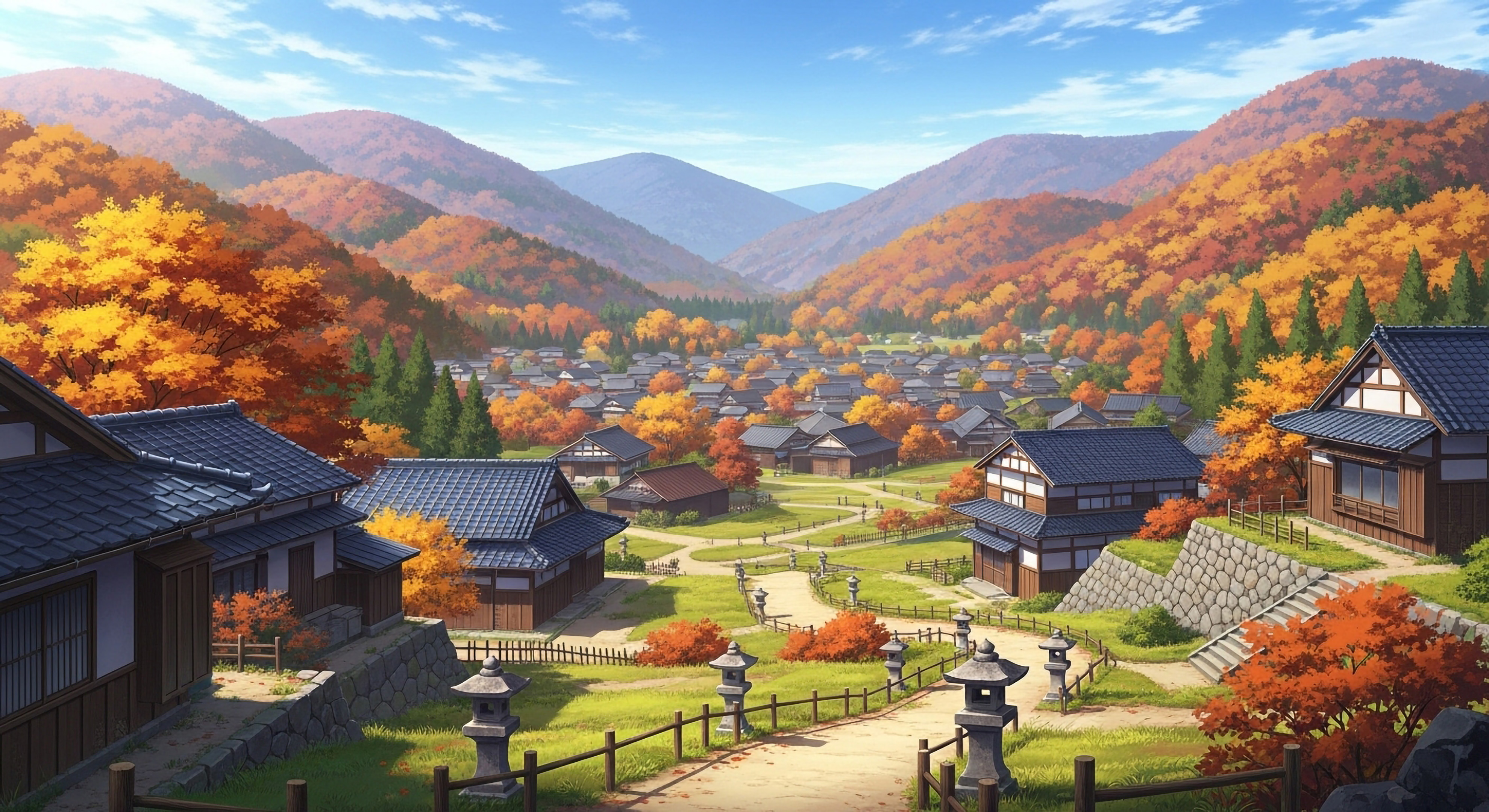Elegant anime village desktop background for PCs